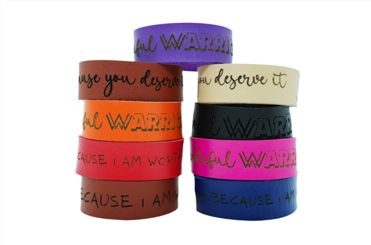 Wandaful Warrior Leather Cuffs w/ Inspirational Quotes